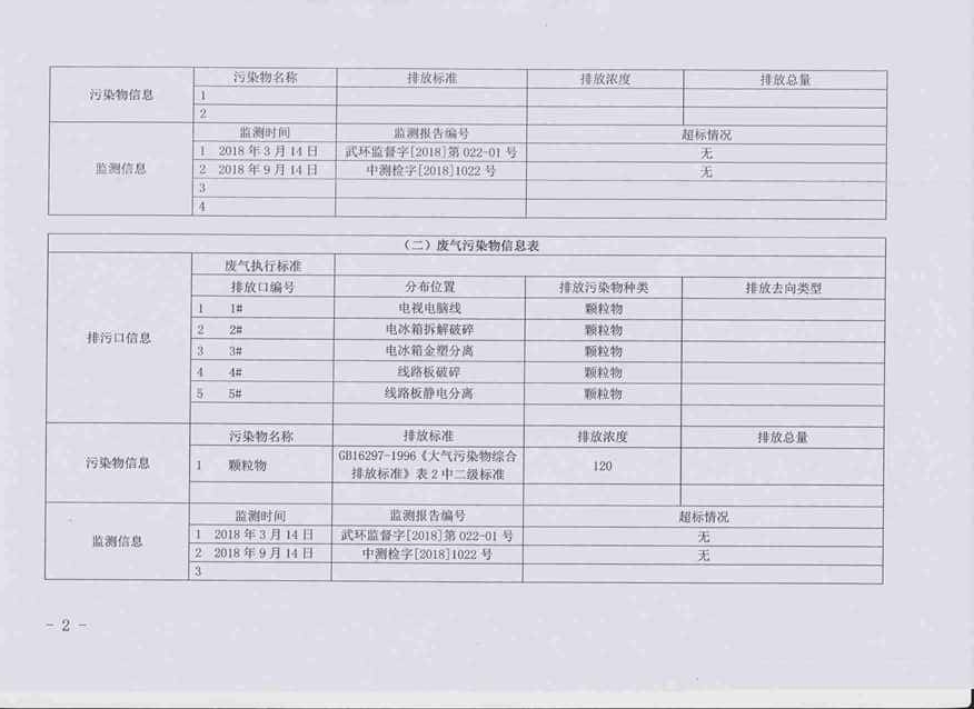 2018年第二季度环境信息公开