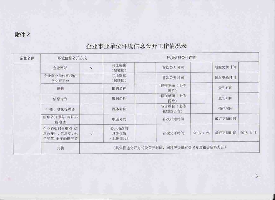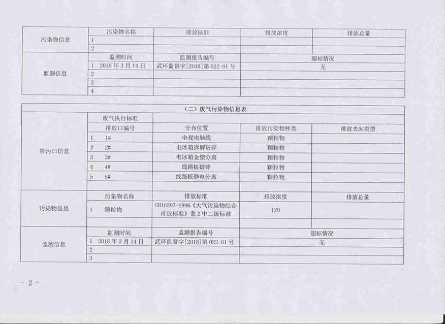 2018年第二季度环境信息公开