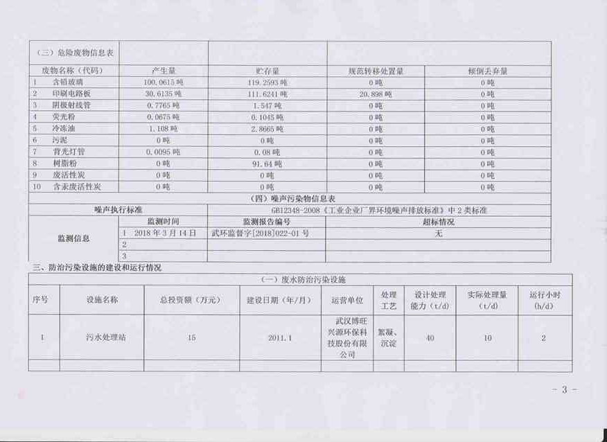 2018年第一季度环境信息公开